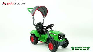 O carrinho de passeio e pedal Politractor Fendt acompanha também capota ajustável e removível. Comando na Direção - Controle de direção das rodas dianteiras através do empurrador, que também é removível.